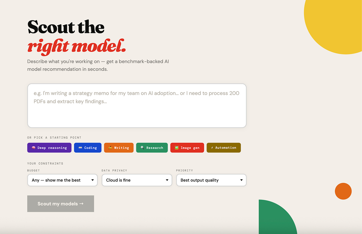 I’ve shared this earlier as a note, wanted to add here as well. I’ve built a simple Model Scout tool to help you decide which model to use for what. Give it a try and let me know what you think.